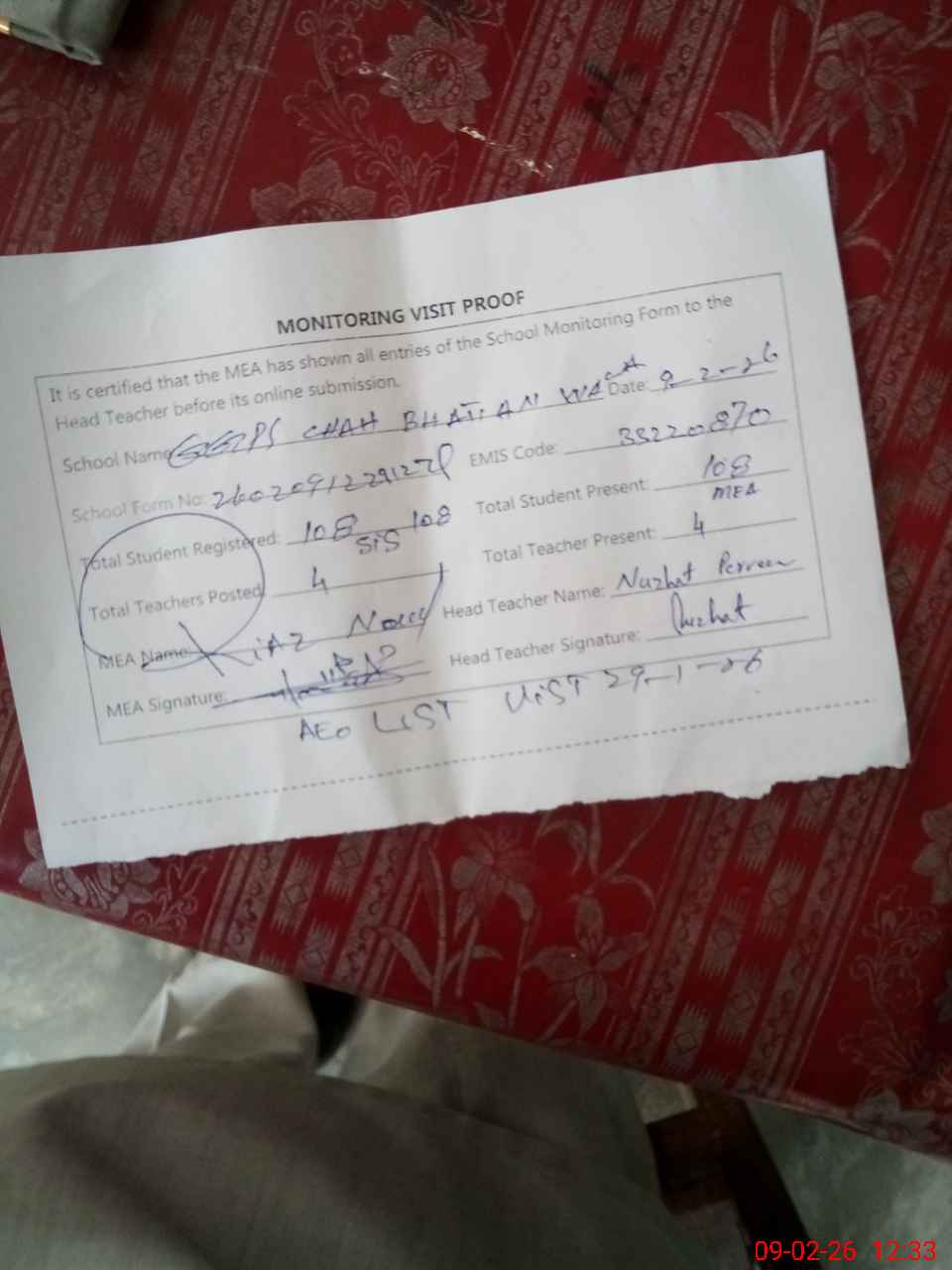 | EMIS Code: 33220870 | Name of School: GGPS CHAH BHATIAN WALA | |||