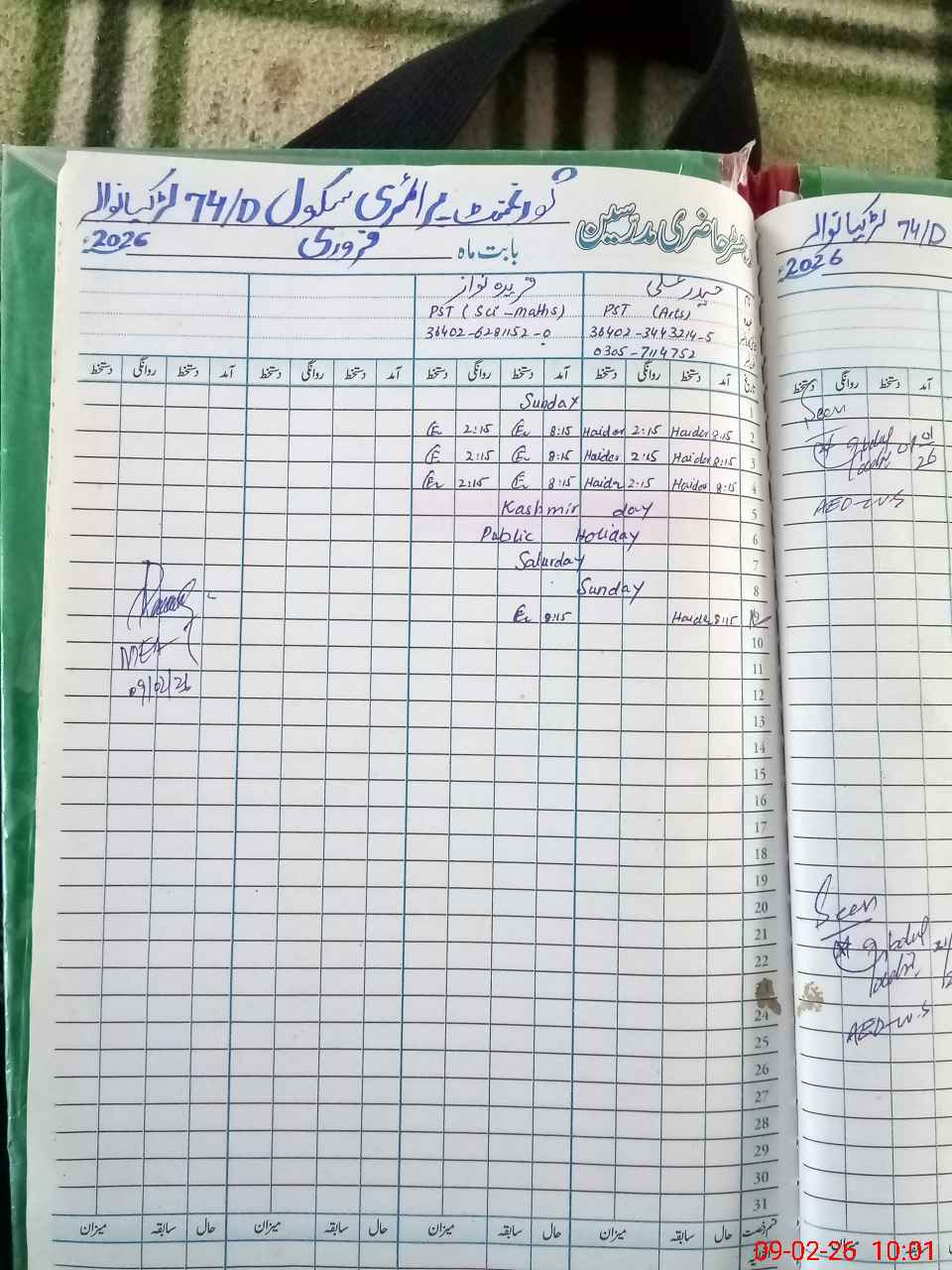 | Name: HA**** AL**** Designation: (School Headmaster's/Headmistress's) PST Phone/Cell Number: 03**** |