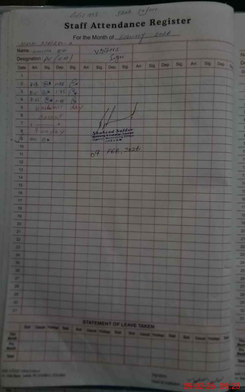 | Name: No**** Bi**** Designation: (School Headmaster's/Headmistress's) PST Phone/Cell Number: 03**** |