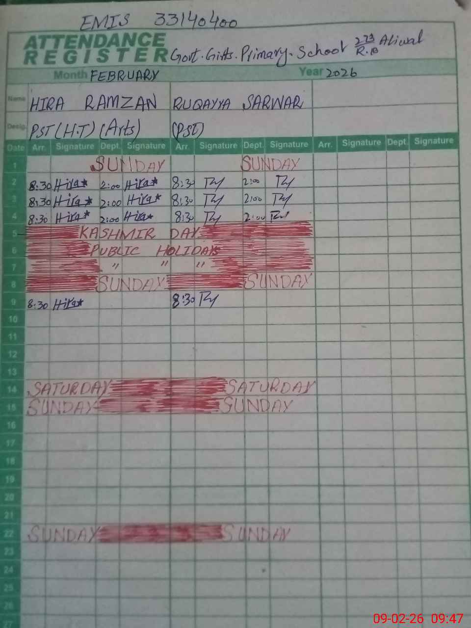 | Name: Hi**** Ra**** Designation: (School Headmaster's/Headmistress's) PST Phone/Cell Number: 03**** |