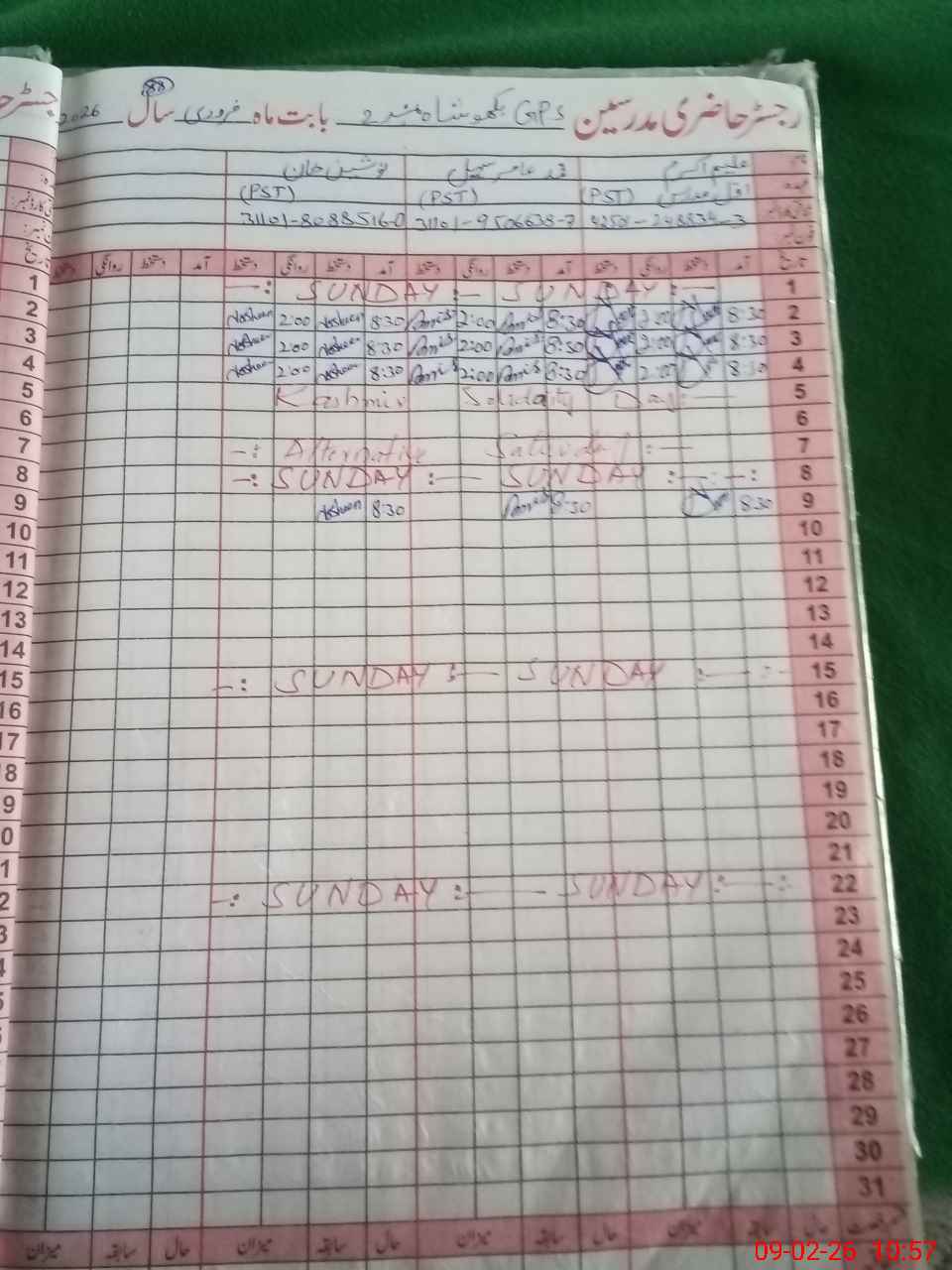 | Name: AL**** AK**** Designation: (School Headmaster's/Headmistress's) PST Phone/Cell Number: 03**** |