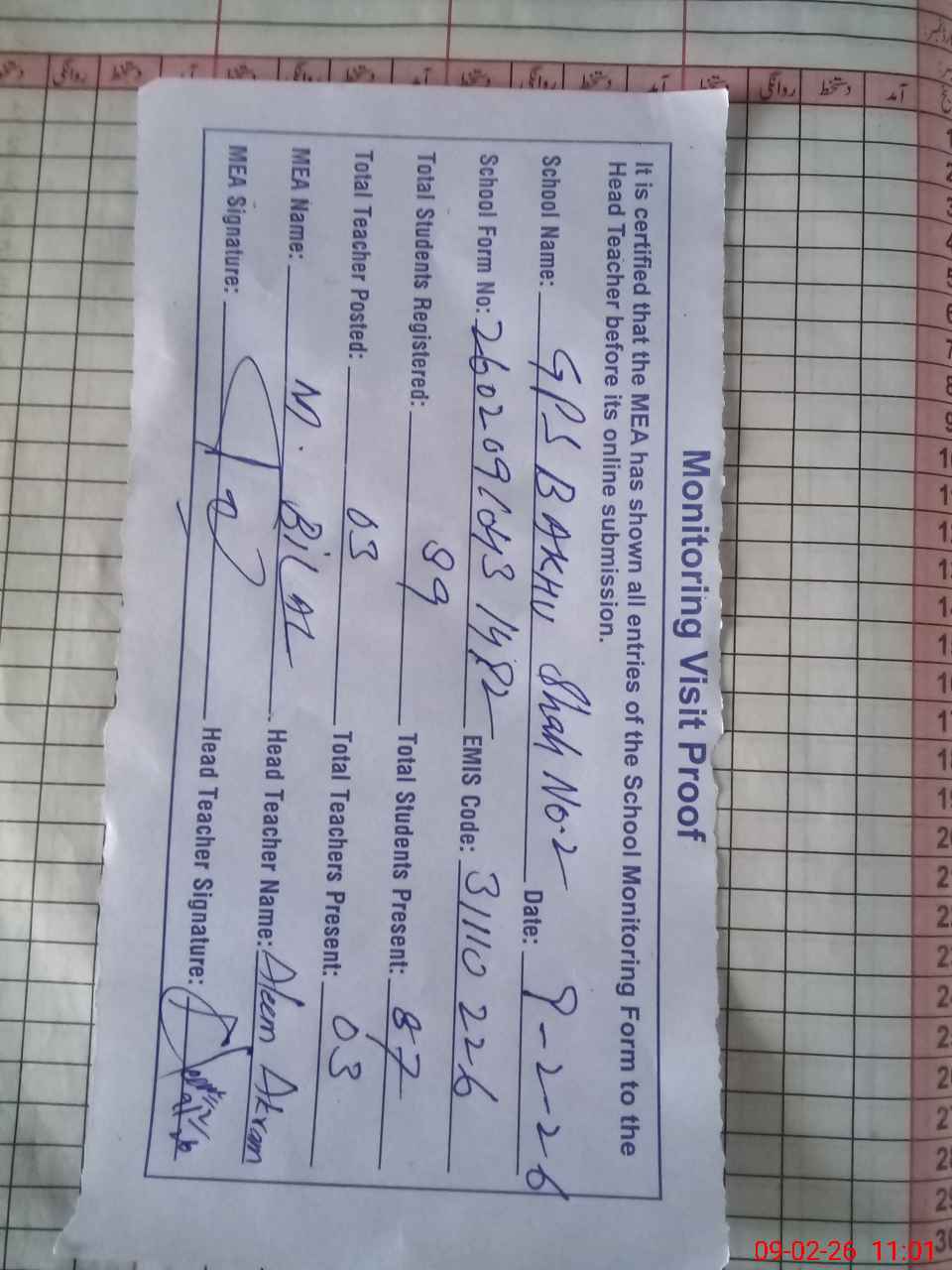 | EMIS Code: 31110226 | Name of School: GPS BAKHU SHAH NO.2 | |||