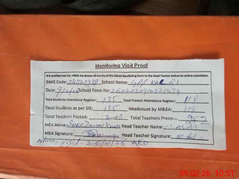 | EMIS Code: 38320439 | Name of School: GPS KALRI | |||