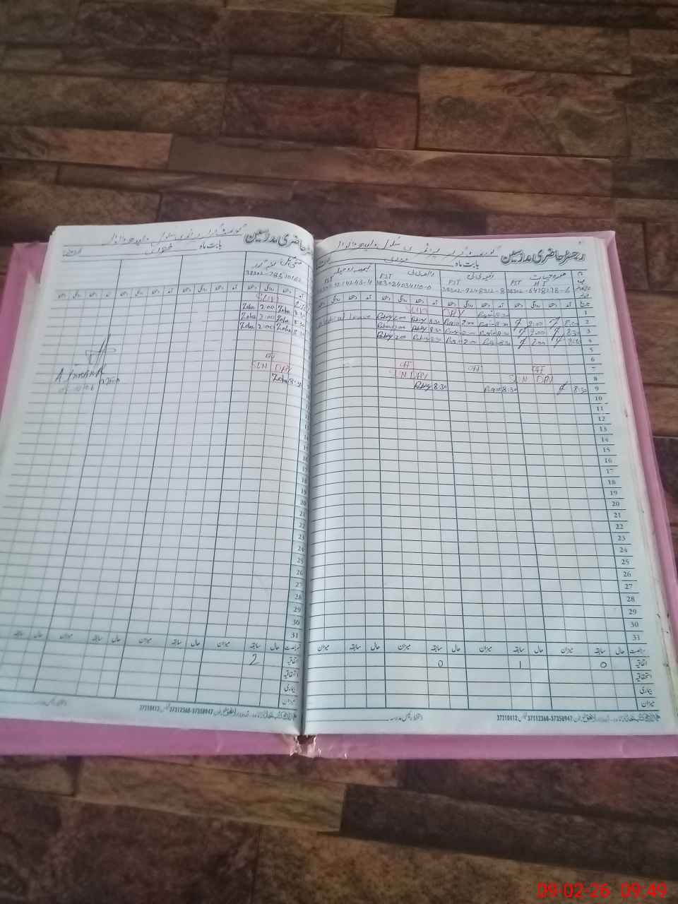 | CNIC | Full Name | Designation | R/C | Absence During Last Calender Month |