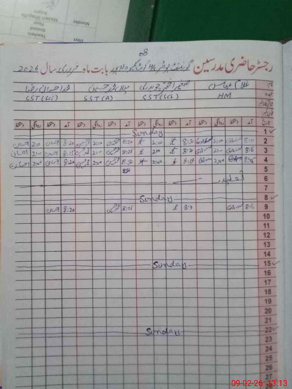 | Remarks (Use Separate Page if Required): DDEO Muhammad Hussain visited on 21-01-2026 35220640 | |||||