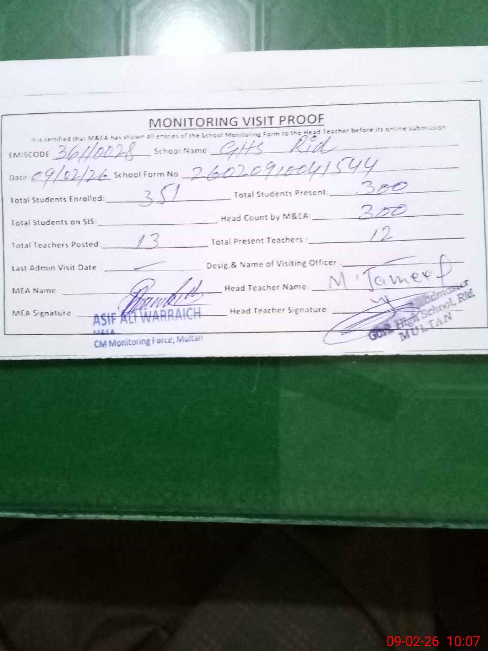 | EMIS Code: 36110028 | Name of School: GHS RID P/O LAR BAHAWALPUR ROAD MULTAN | |||