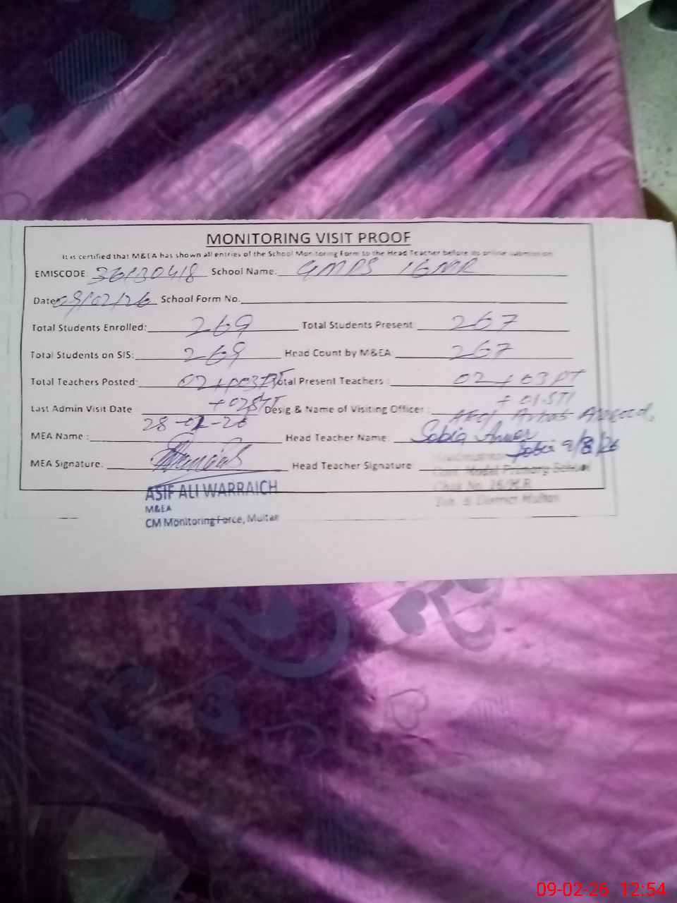 | EMIS Code: 36130418 | Name of School: GMPS 16 M R P/O 16 MR | |||