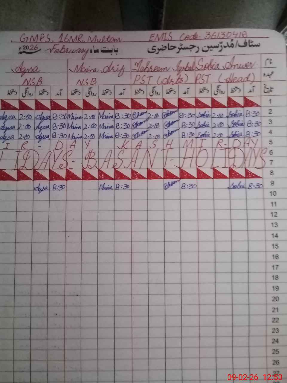 | District: MULTAN | Tehsil: MULTAN SADAR | Markaz: MAKHDOOM RASHEED - FEMALE | Level: Primary | |