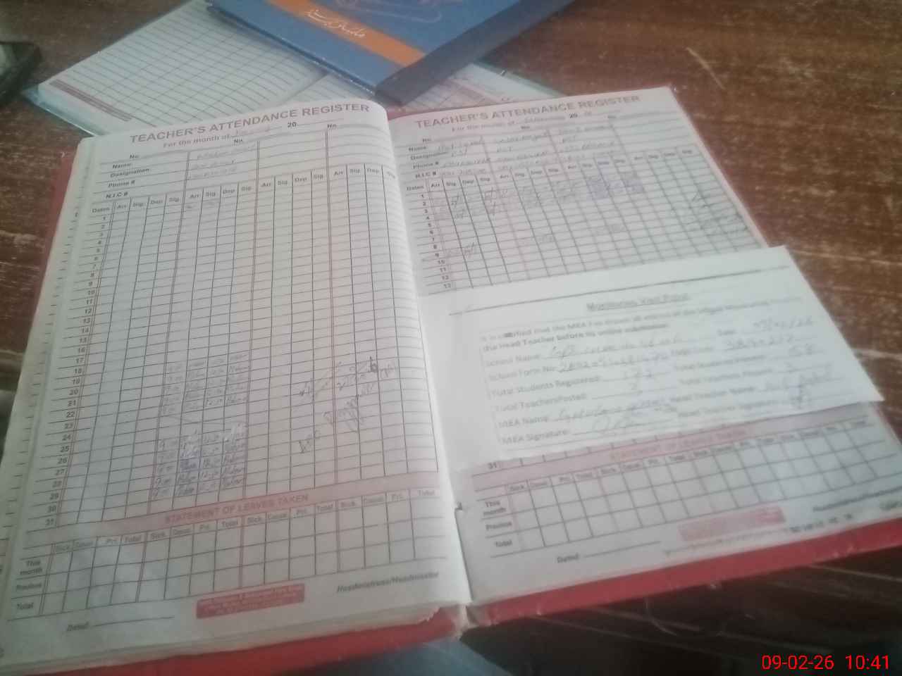 | Attendance Register | Head Teacher | MEA with School | Visit Proof |