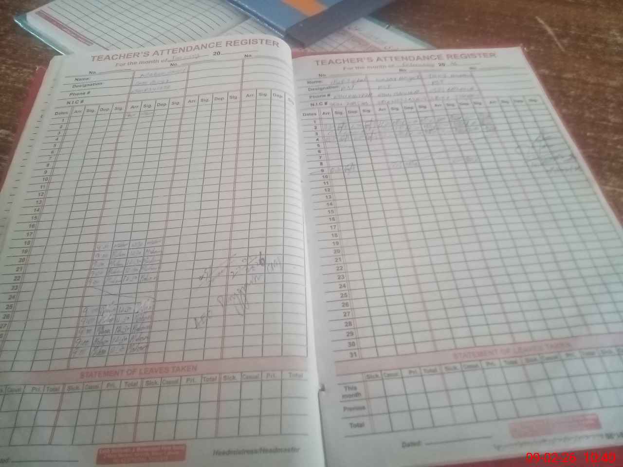 | Name: NA**** HA**** Designation: (School Headmaster's/Headmistress's) ESE SCIENCE MATH Phone/Cell Number: 03**** |