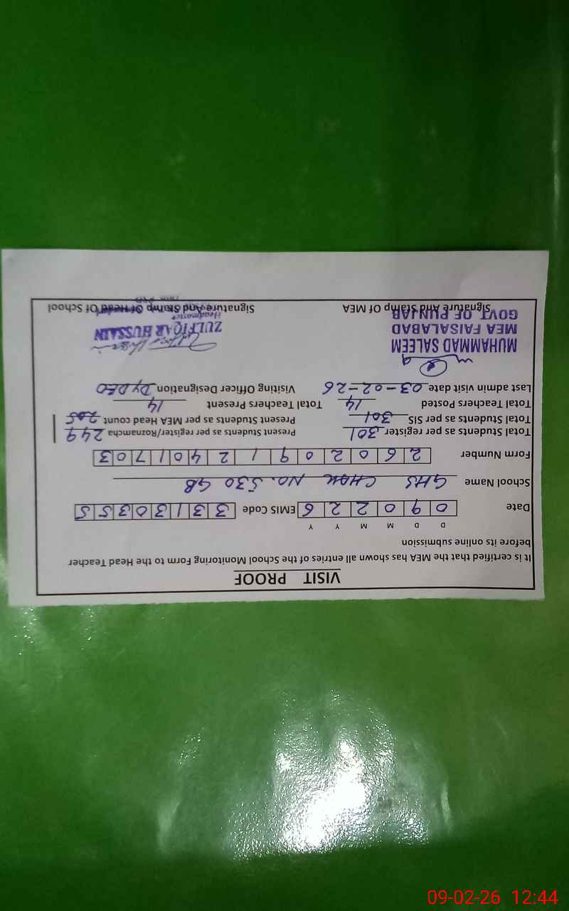 | EMIS Code: 33130355 | Name of School: GHS CHAK NO. 530/GB FSD | |||