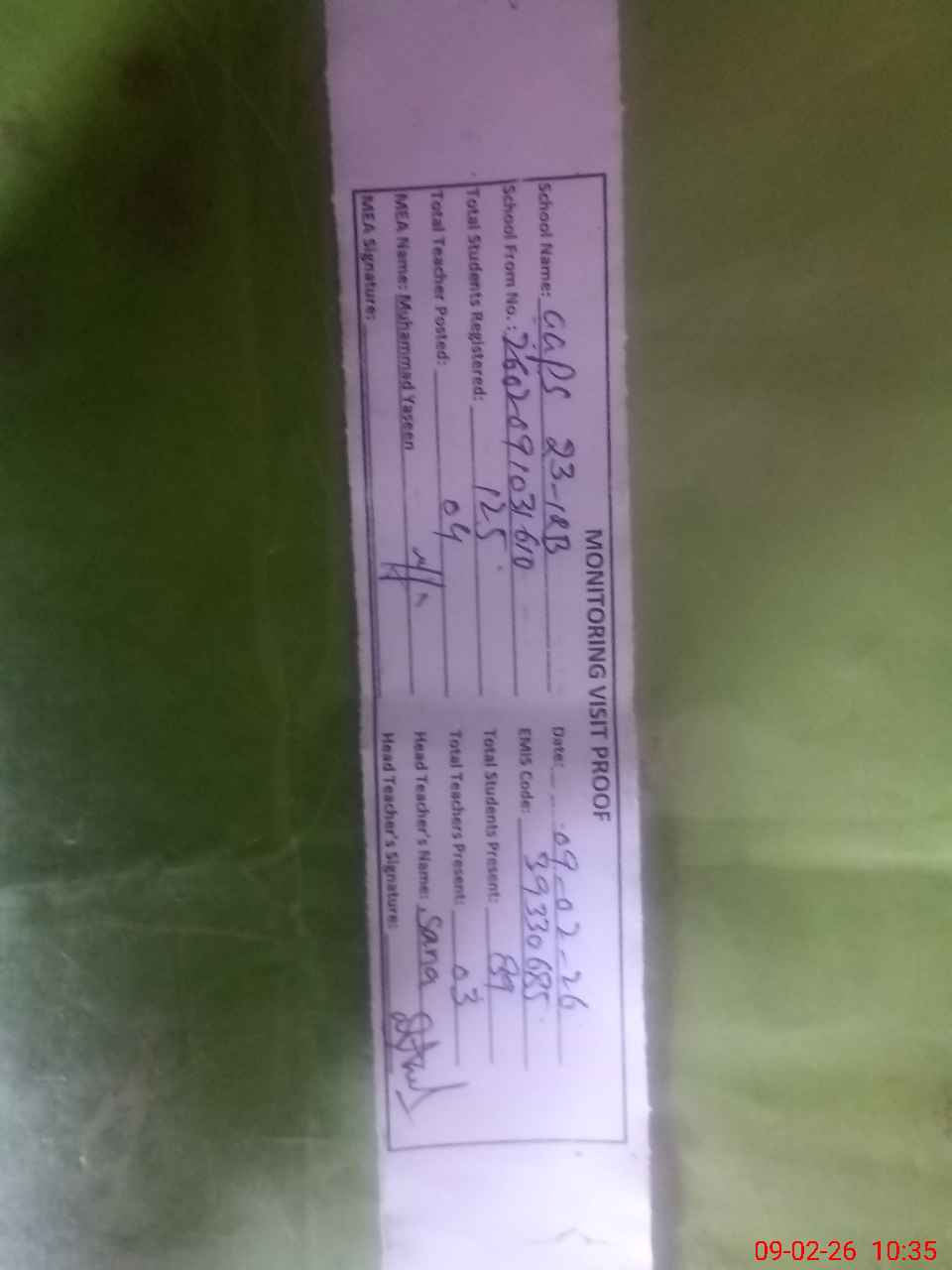 | EMIS Code: 39330685 | Name of School: GGPS CHAK NO. 23/1-RB | |||