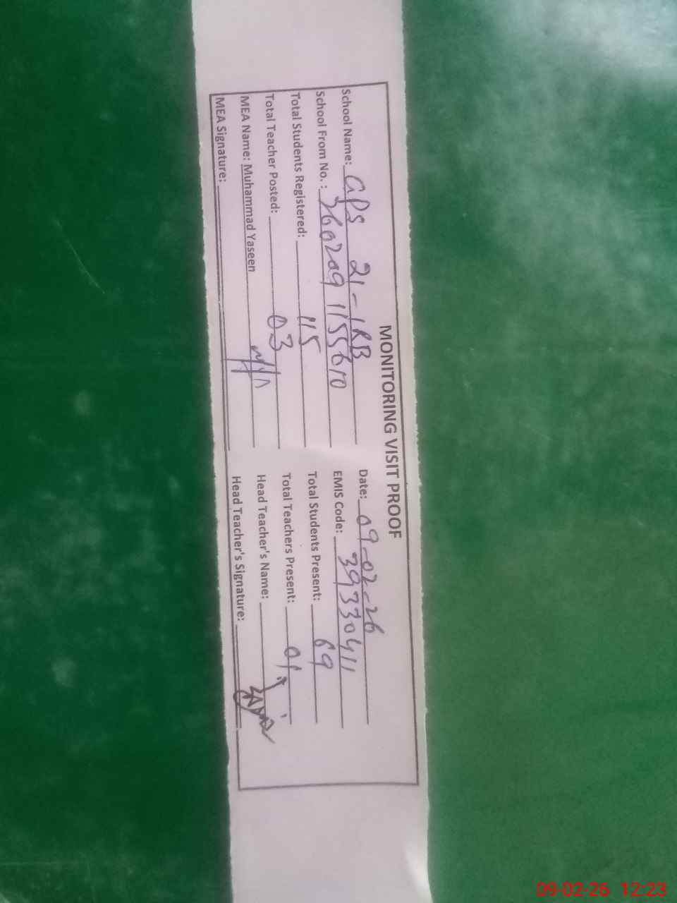 | EMIS Code: 39330411 | Name of School: GPS CHAK NO. 21/1-RB | |||