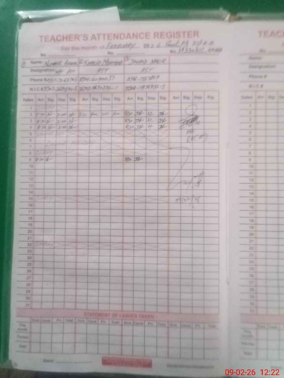 | 35**** | Mu**** Nu**** Af**** | PST Science/Maths | Regular | 0 | 0 | 0 | 0 | 0 | 0 | 0 | 0 | 0 | Absent (Un-Authorized) |