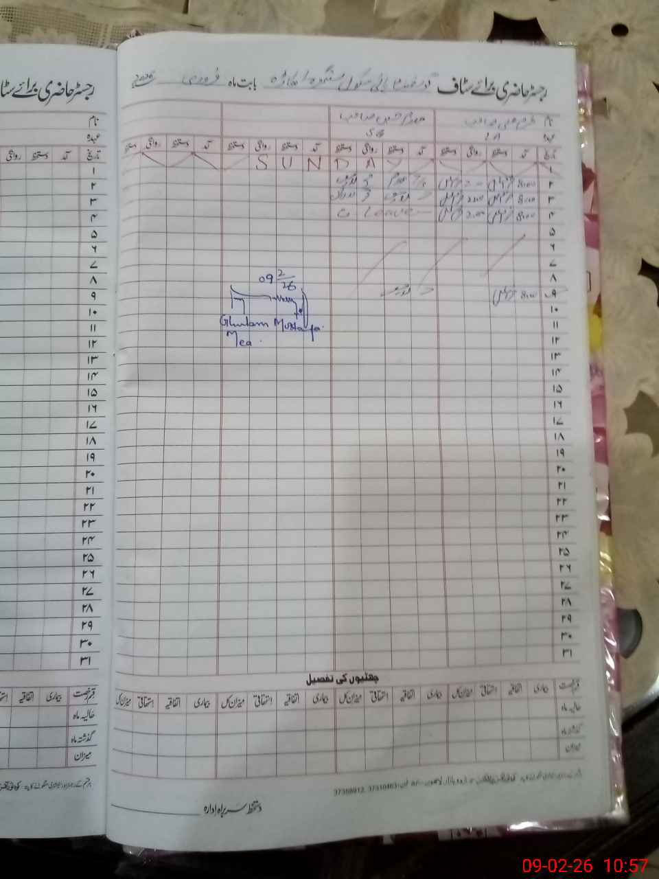 | CNIC | Full Name | Designation | R/C | Absence During Last Calender Month |