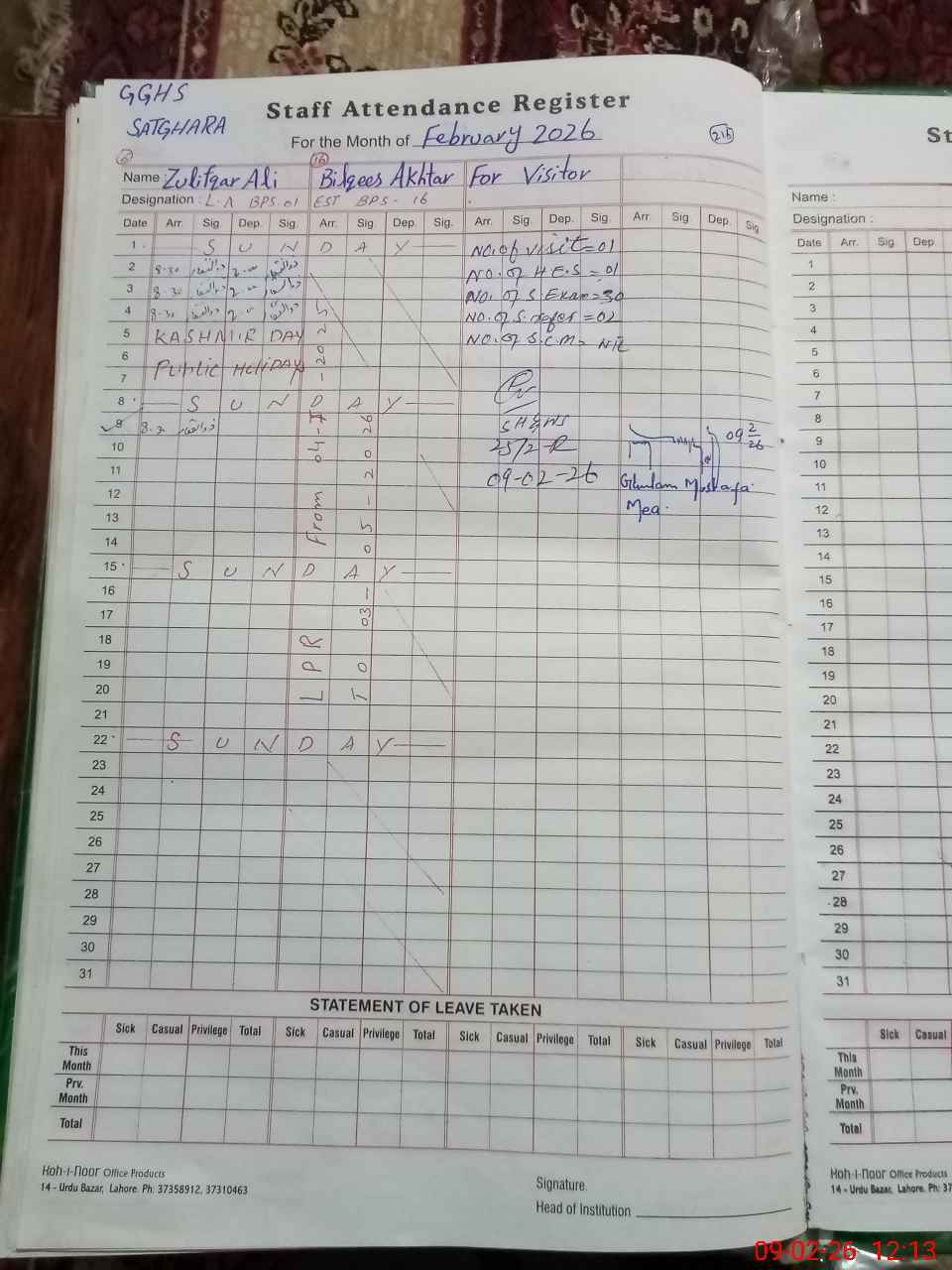 | Remarks (Use Separate Page if Required): Last visit by DEO Secondary on 09 September, 2026 | |||||