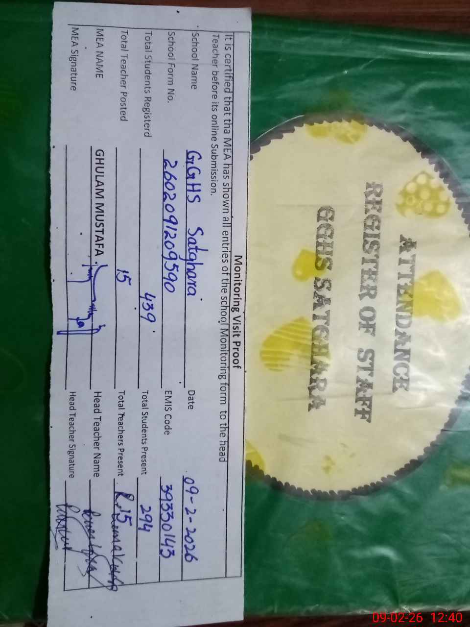 | EMIS Code: 39330143 | Name of School: GGHS SATGHARA | |||
