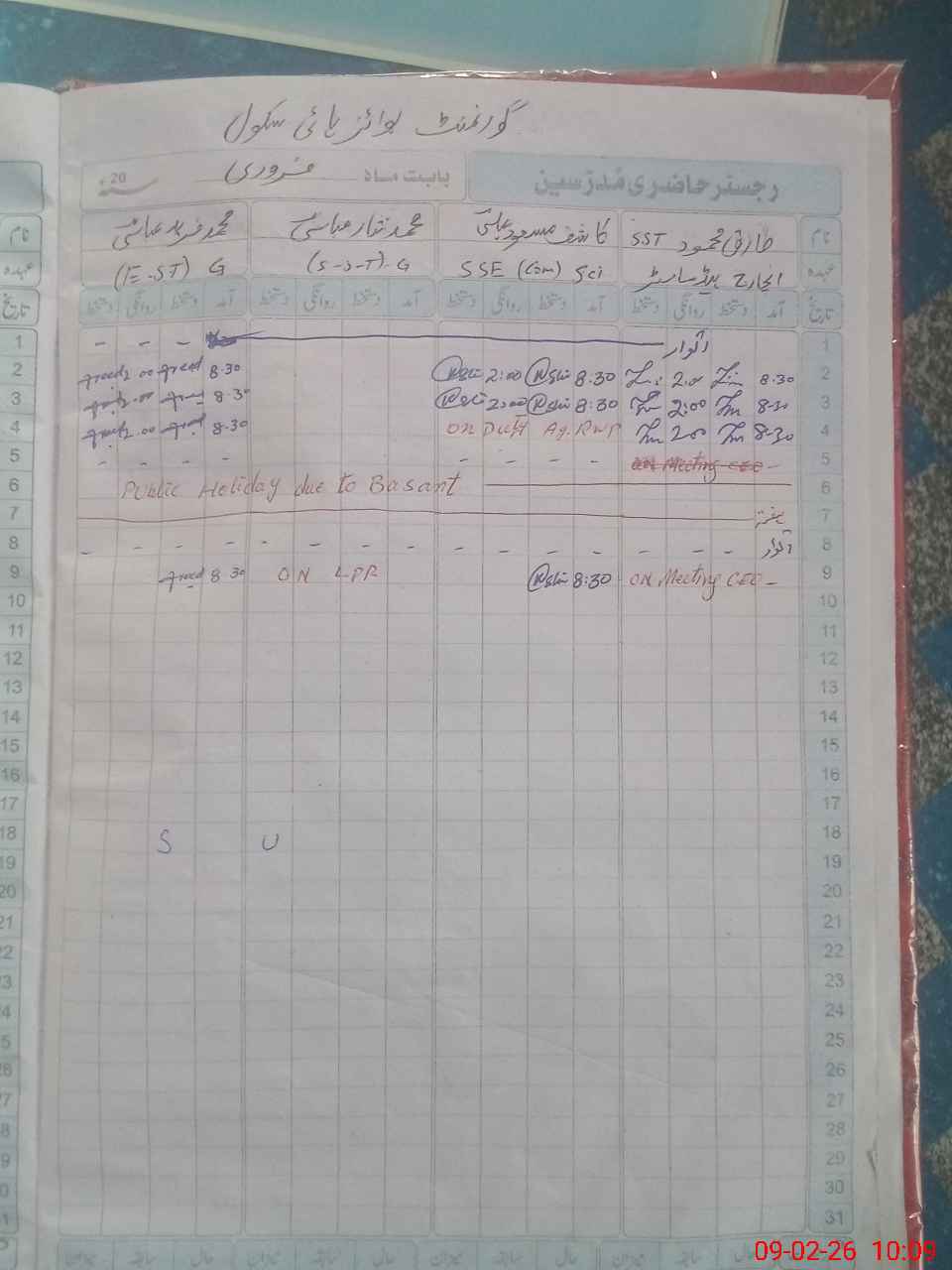 | Remarks (Use Separate Page if Required): Head teacher Tariq Mahmood is physical not present in school on attendance register he shown on meeting with CEO and I will mark unauthorized absent | |||||