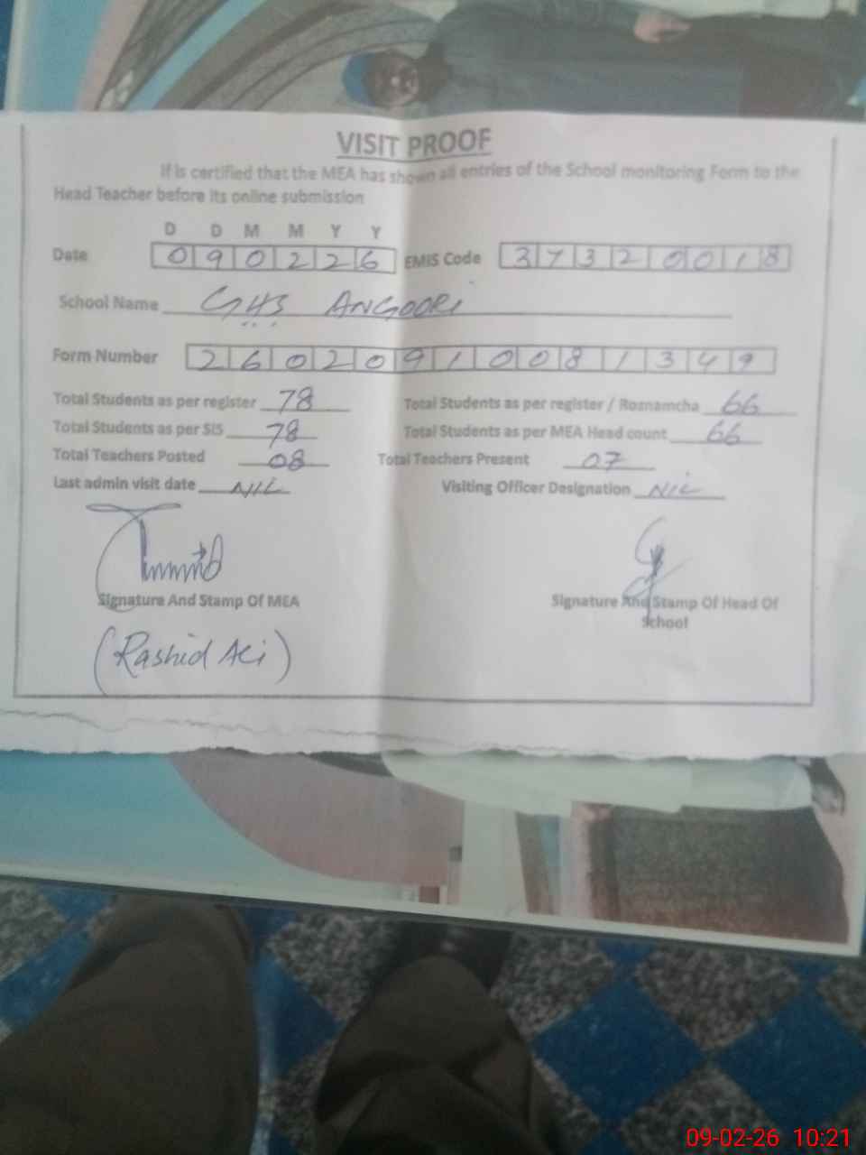 | EMIS Code: 37320018 | Name of School: GHS ANGOORI | |||