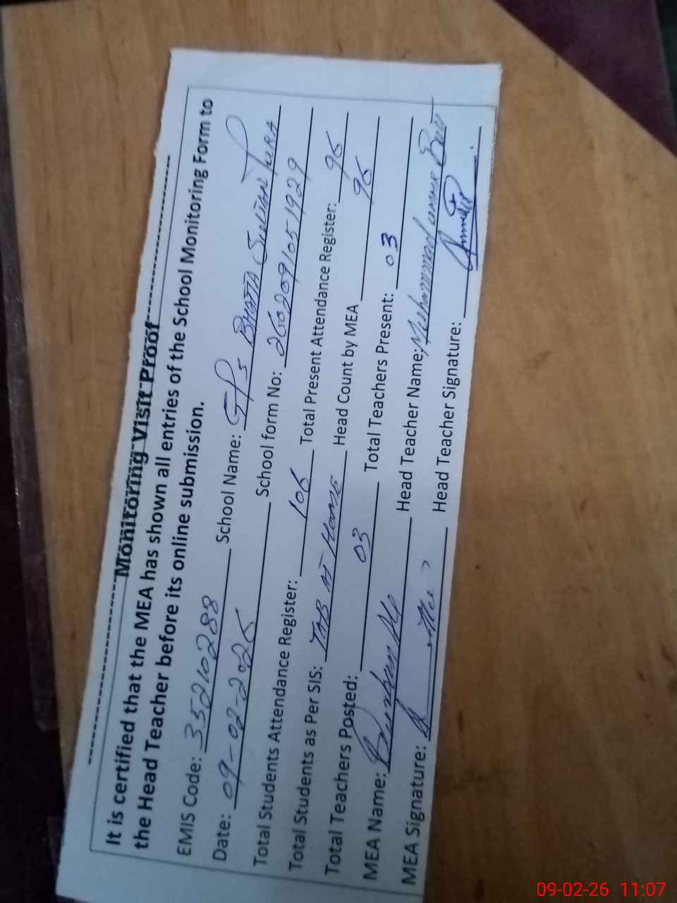 | EMIS Code: 35210288 | Name of School: GPS BHATTE SULTAN PURA | |||