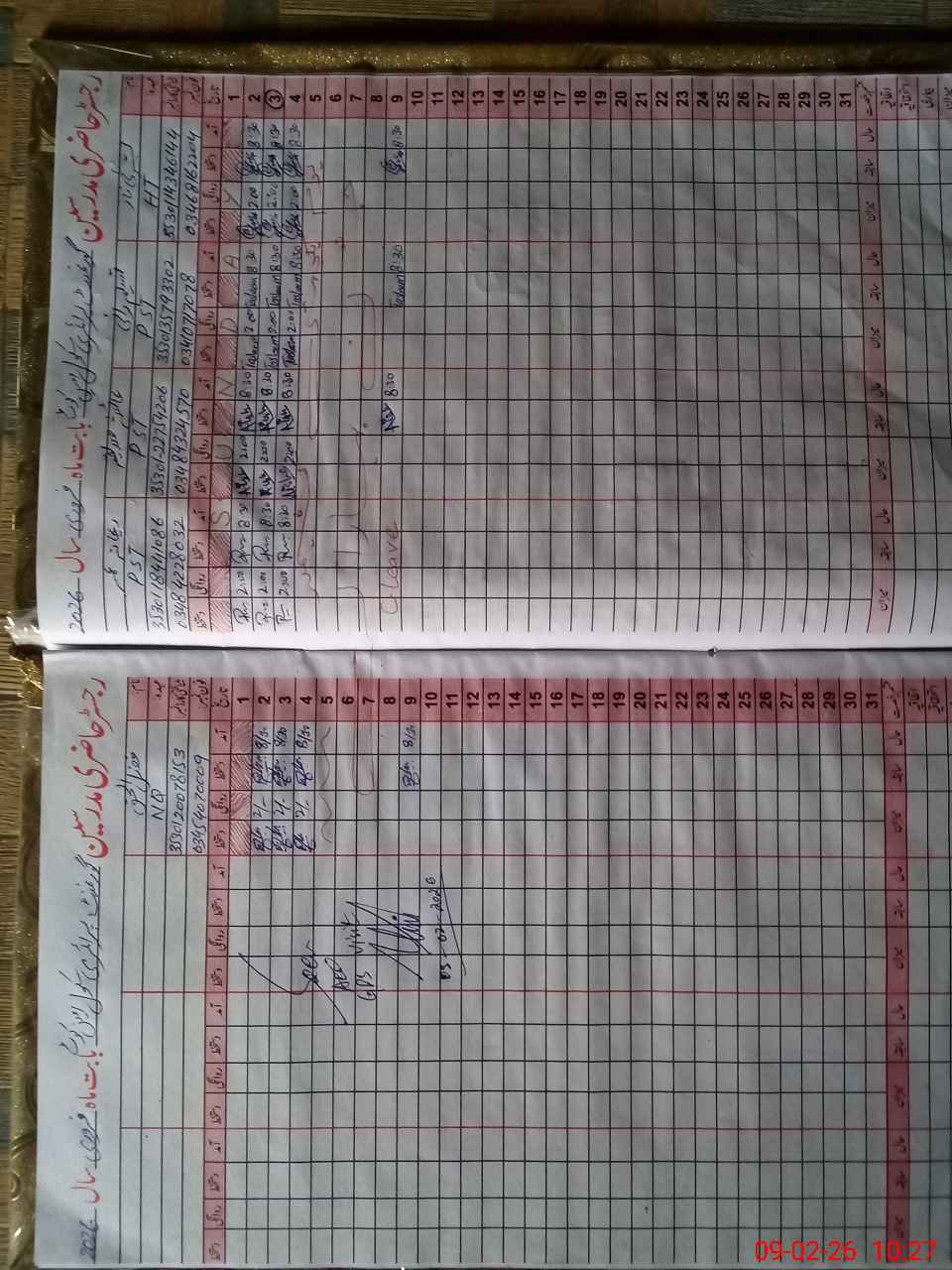 | CNIC | Full Name | Designation | R/C | Absence During Last Calender Month |