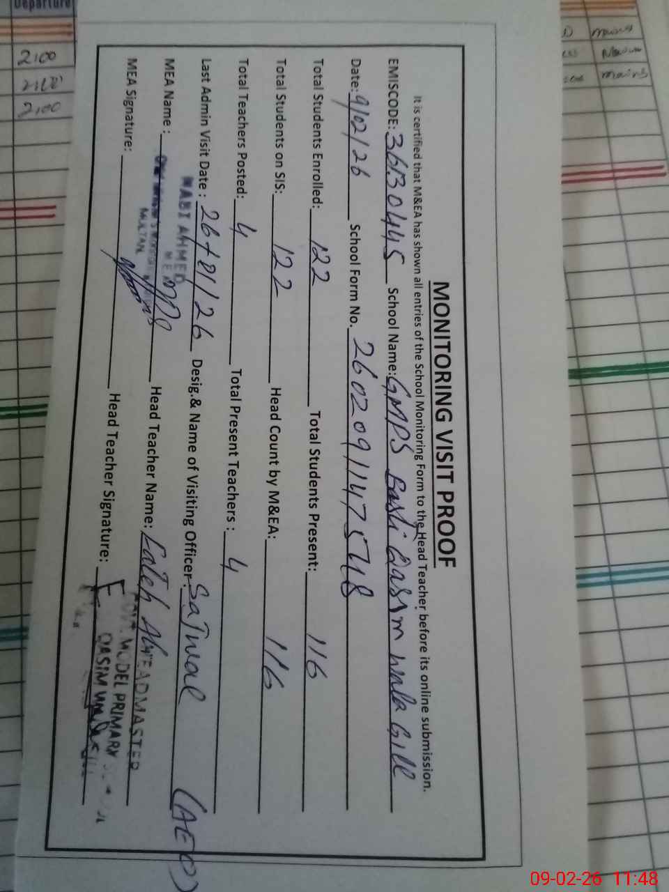 | EMIS Code: 36130445 | Name of School: GMPS BASTI QASIM WALA GILL | |||