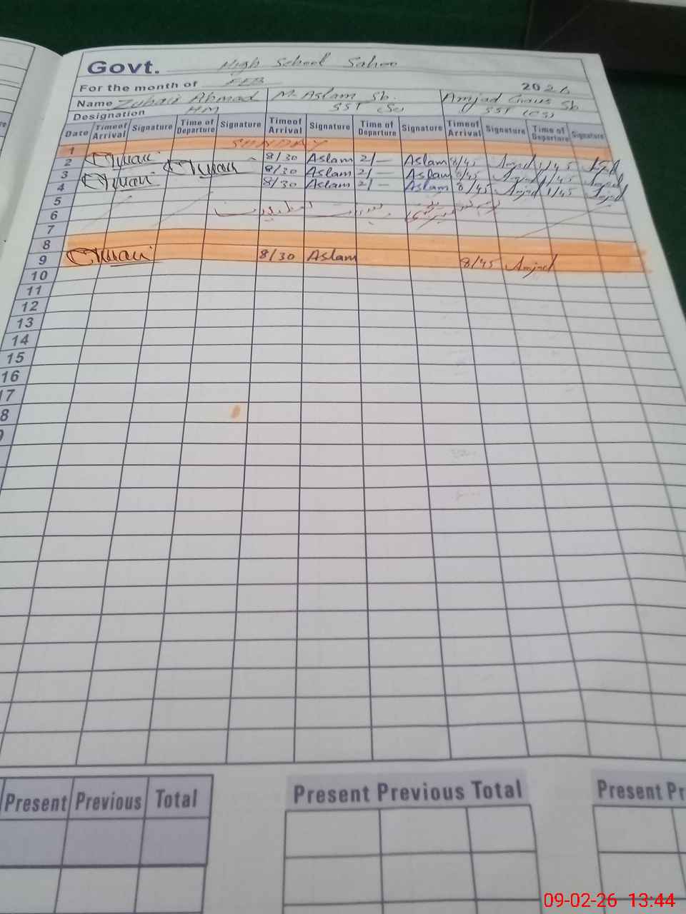 | CNIC | Full Name | Designation | R/C | Absence During Last Calender Month |