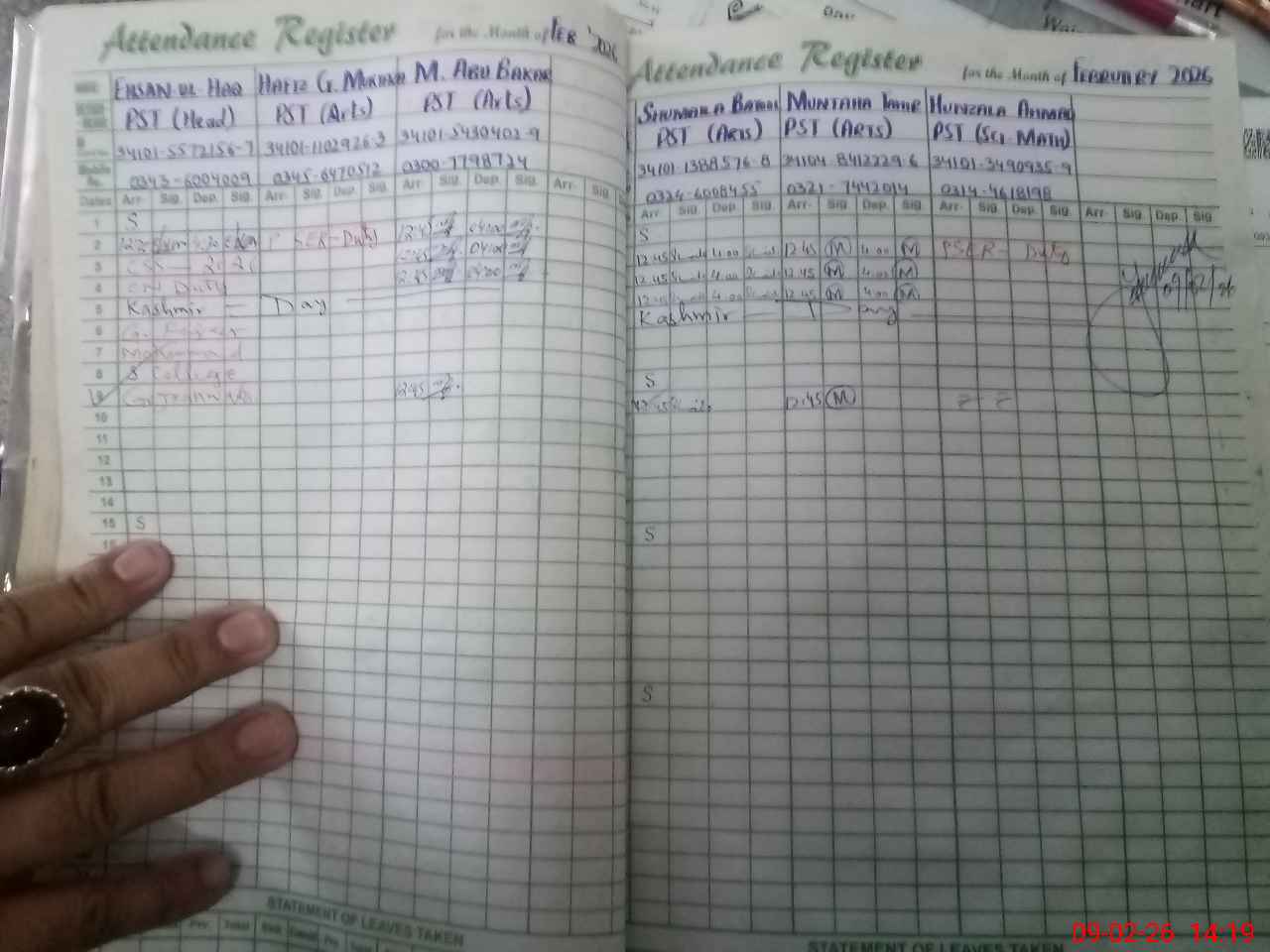 | 34**** | Eh**** UlHa**** | PST Arts | Regular | 0 | 0 | 0 | 0 | 0 | 0 | 0 | 0 | 0 | Exam Duty |