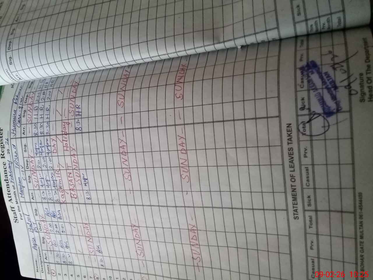 | CNIC | Full Name | Designation | R/C | Absence During Last Calender Month |