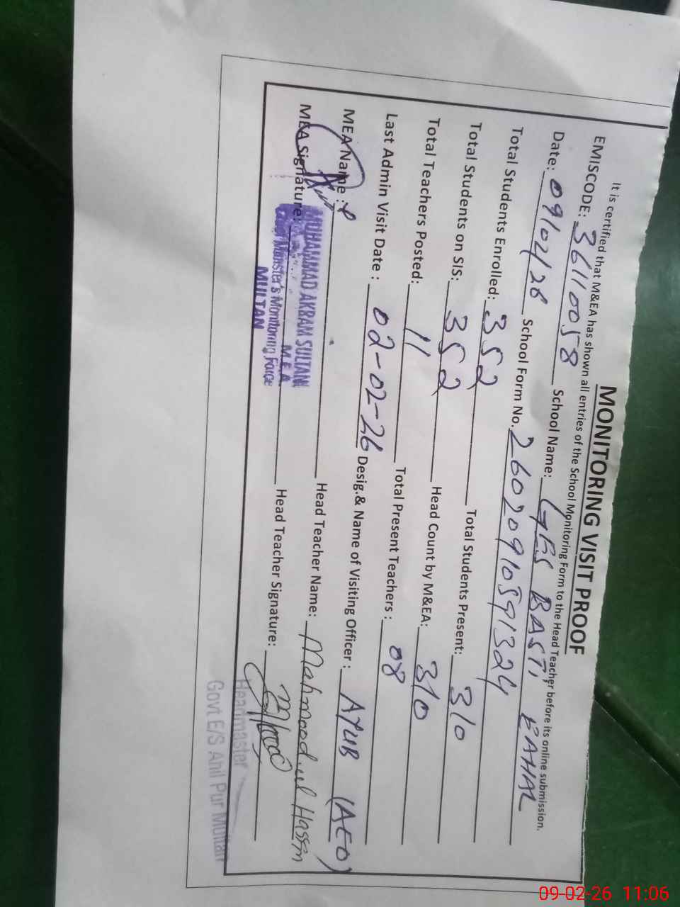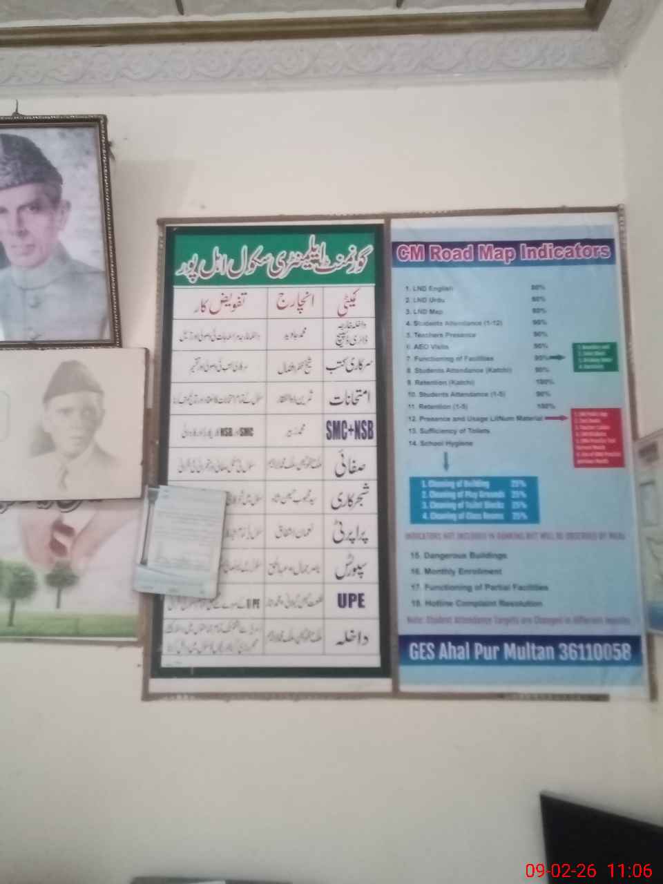 | EMIS Code: 36110058 | Name of School: GES AHIL PUR BASTI GHULAM YASEEN | |||