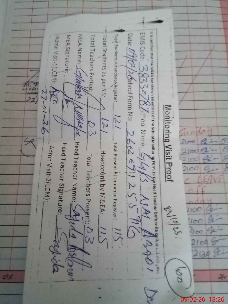 | Monitoring Date: 09-02-2026 | Start Time: 09-02-2026 12:50 PM | End Time: 09-02-2026 01:30 PM | Name of MEA: Gh**** Mu**** | |