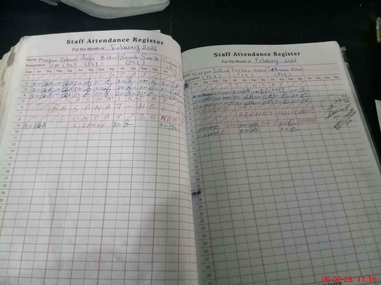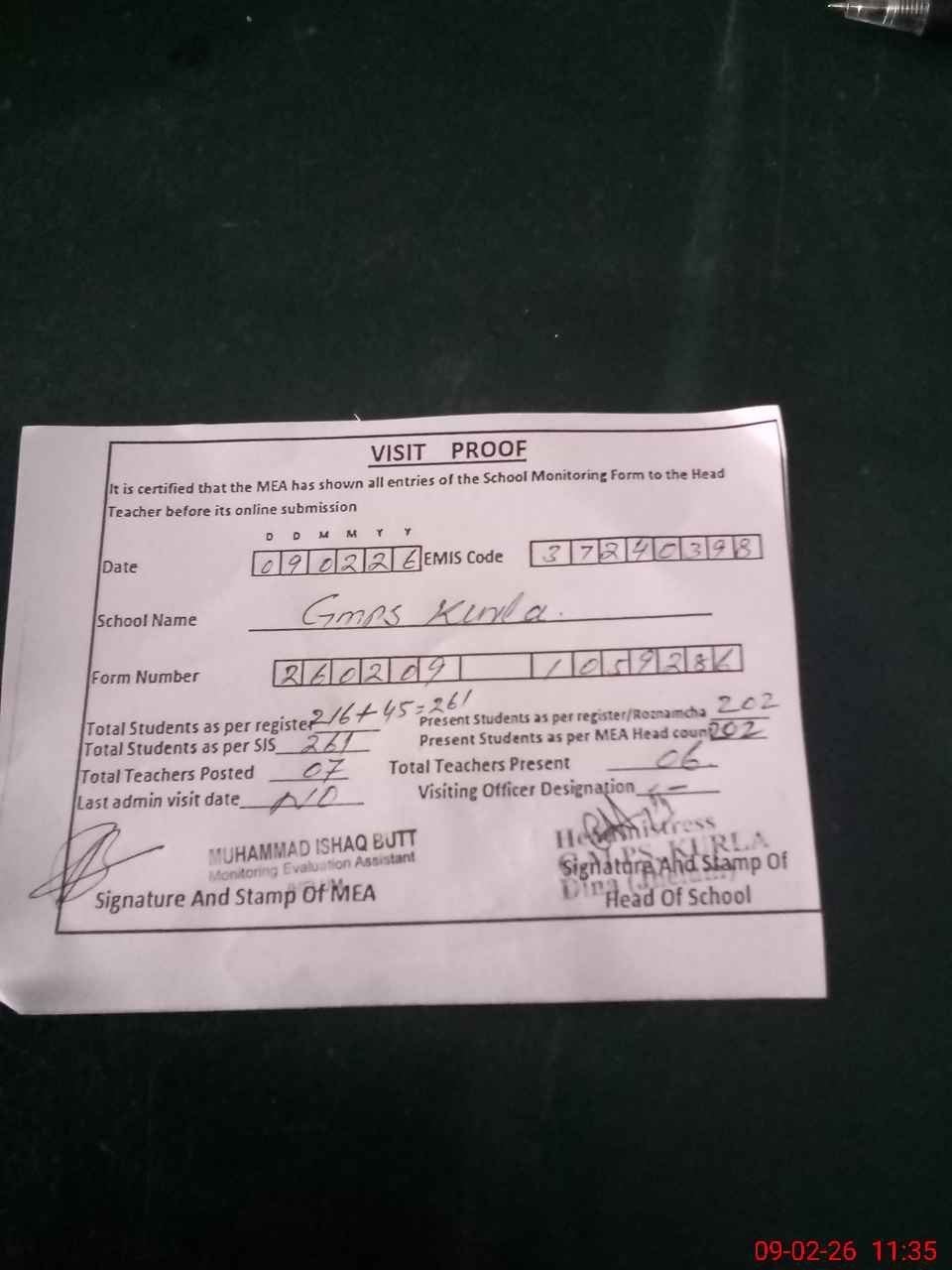 | Attendance Register | Head Teacher | MEA with School | Visit Proof |
