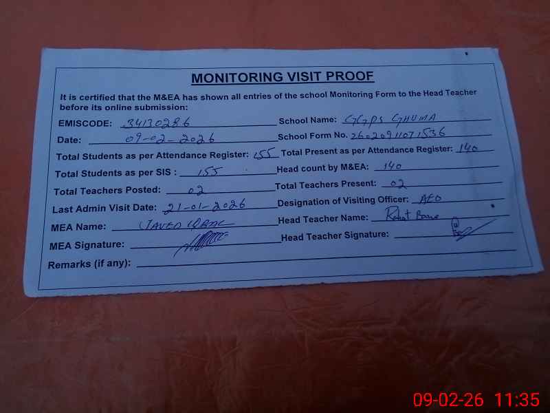 | EMIS Code: 34130286 | Name of School: GGPS GUMMA | |||