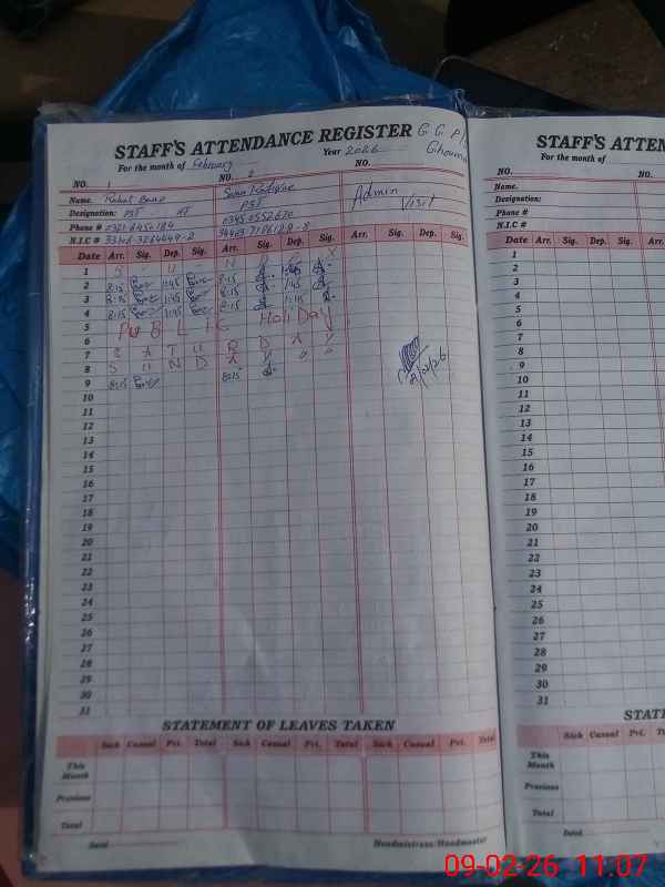 | CNIC | Full Name | Designation | R/C | Absence During Last Calender Month |