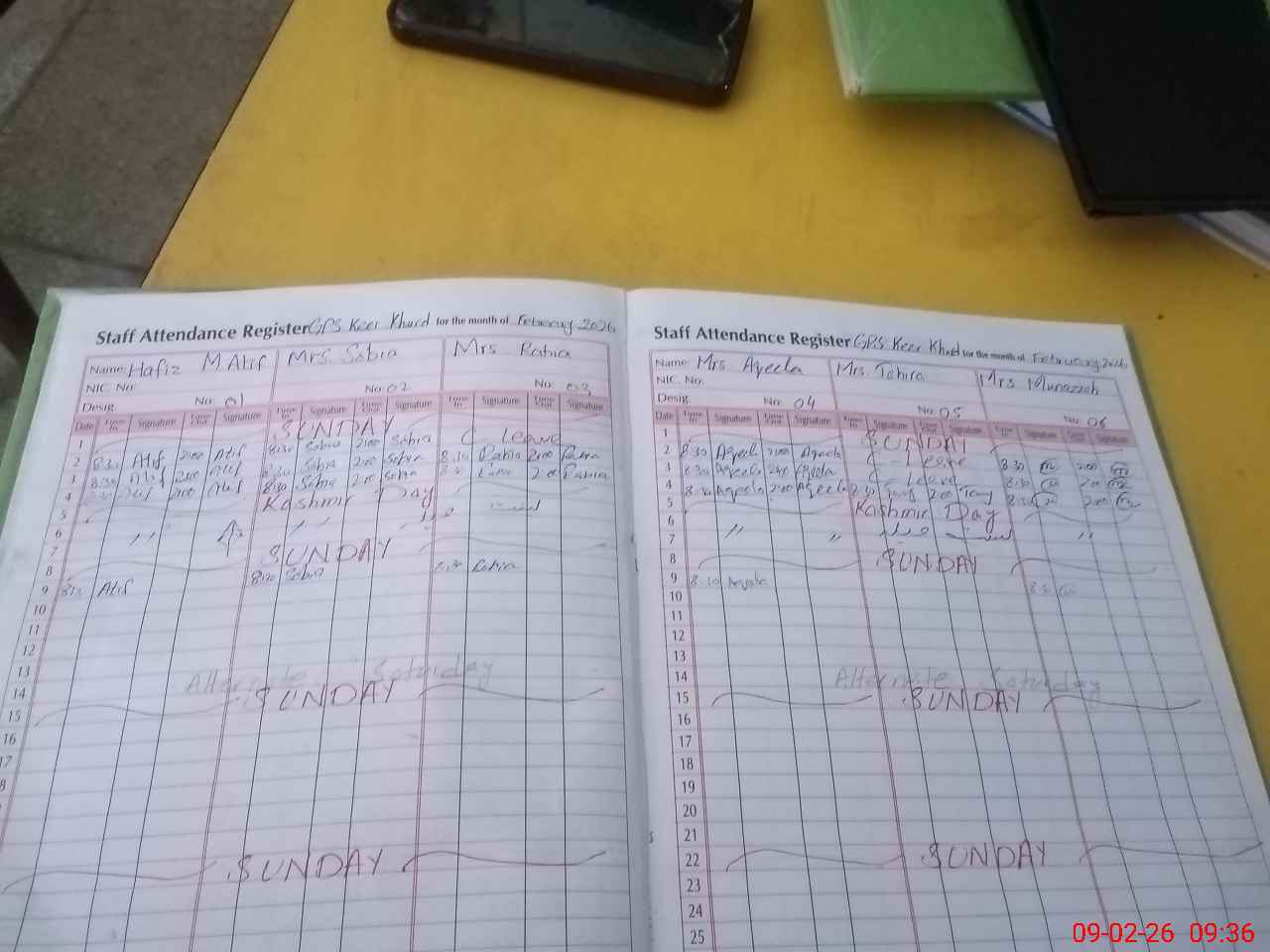 | CNIC | Full Name | Designation | R/C | Absence During Last Calender Month |
