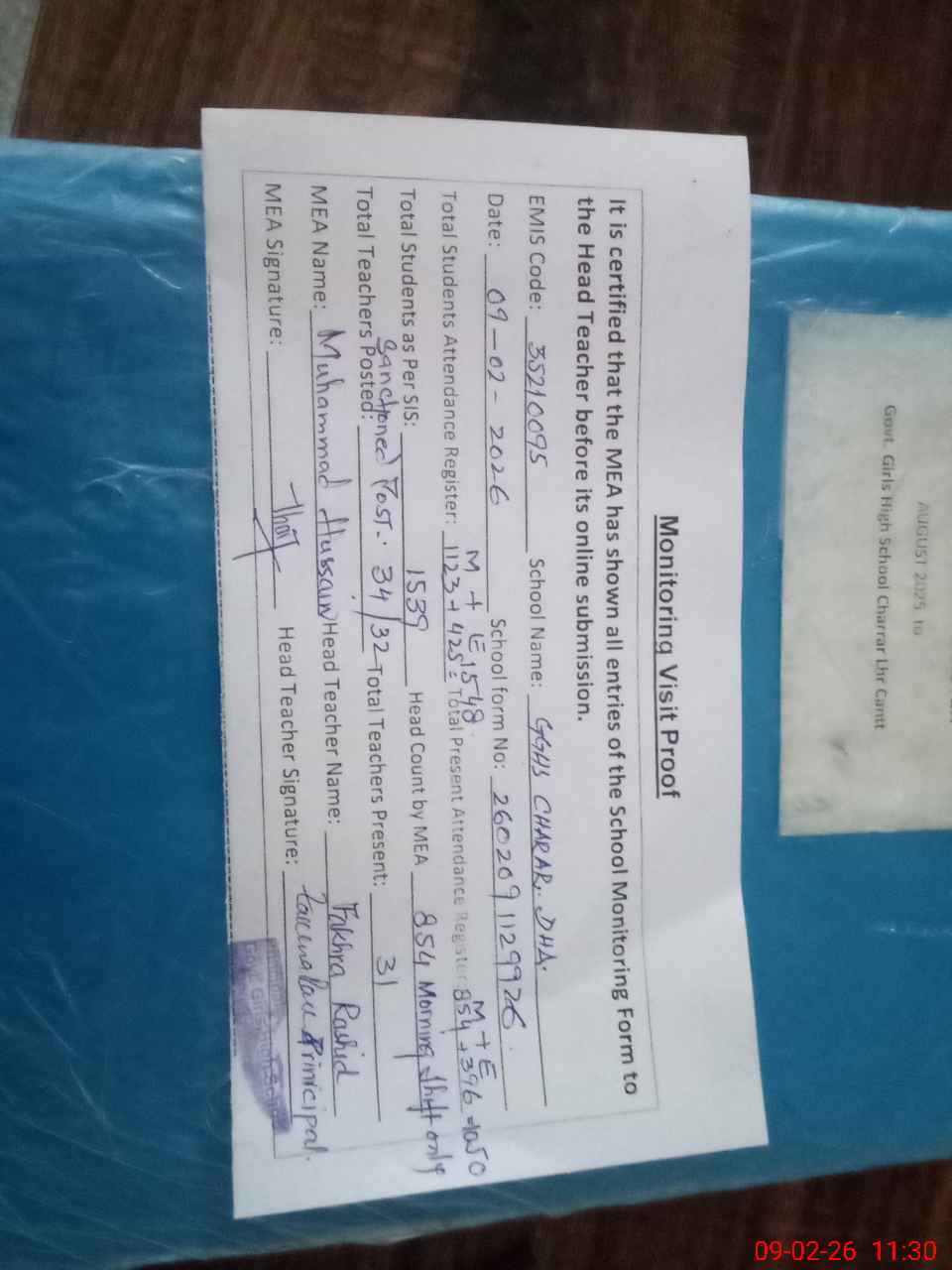 | EMIS Code: 35210095 | Name of School: GGHS CHARAR DHA | |||