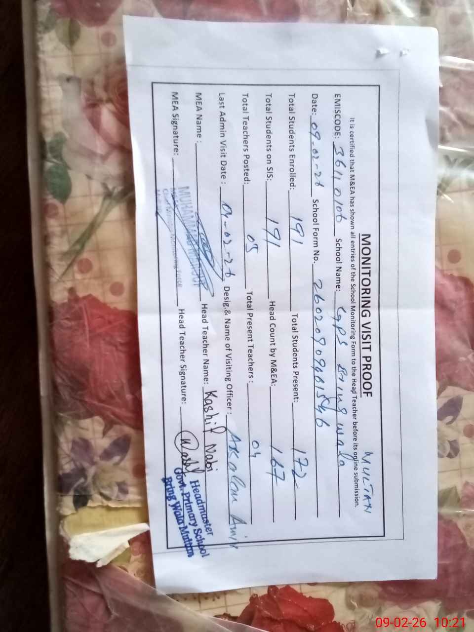 | EMIS Code: 36110106 | Name of School: GPS BRING WALA MOZA NEEL KOT | |||