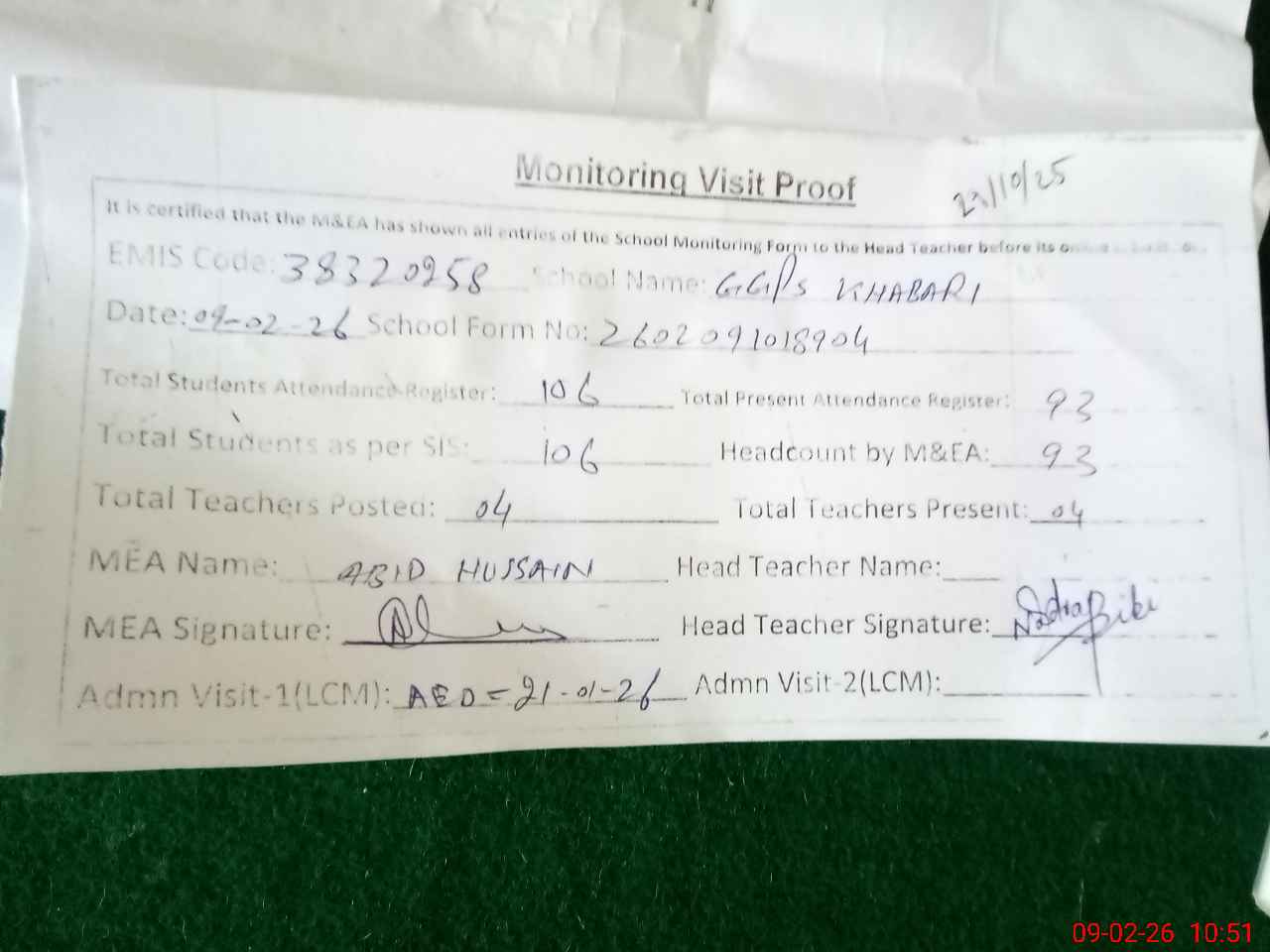 | Monitoring Date: 09-02-2026 | Start Time: 09-02-2026 10:18 AM | End Time: 09-02-2026 10:52 AM | Name of MEA: Ab**** Hu**** | |