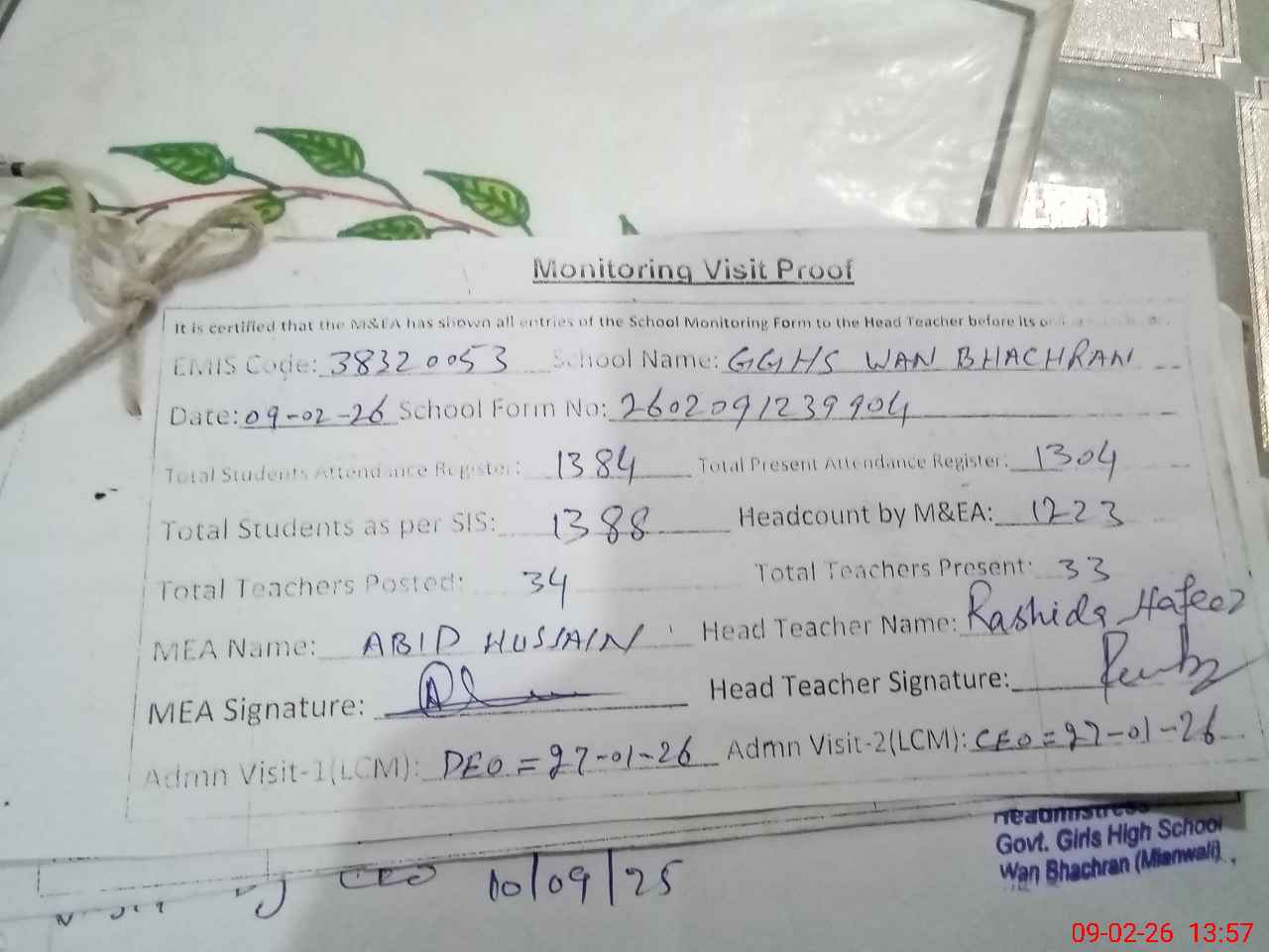 | EMIS Code: 38320053 | Name of School: GGHS WAN BHACHRAN | |||
