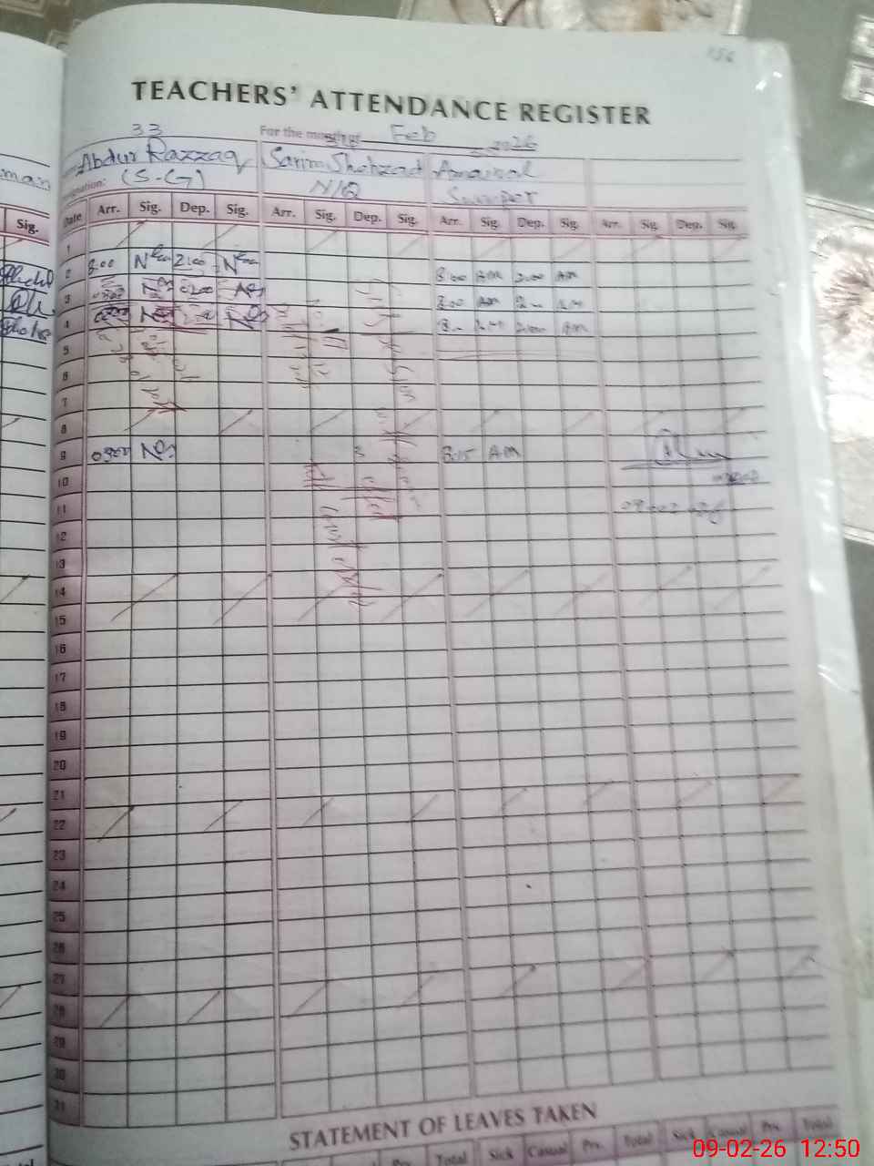 | 38**** | Sa**** Sh**** | NIAB QASID | 0 | 0 | 0 | 0 | 0 | 0 | 0 | 0 | 0 | Absent (Un-Authorized) | |