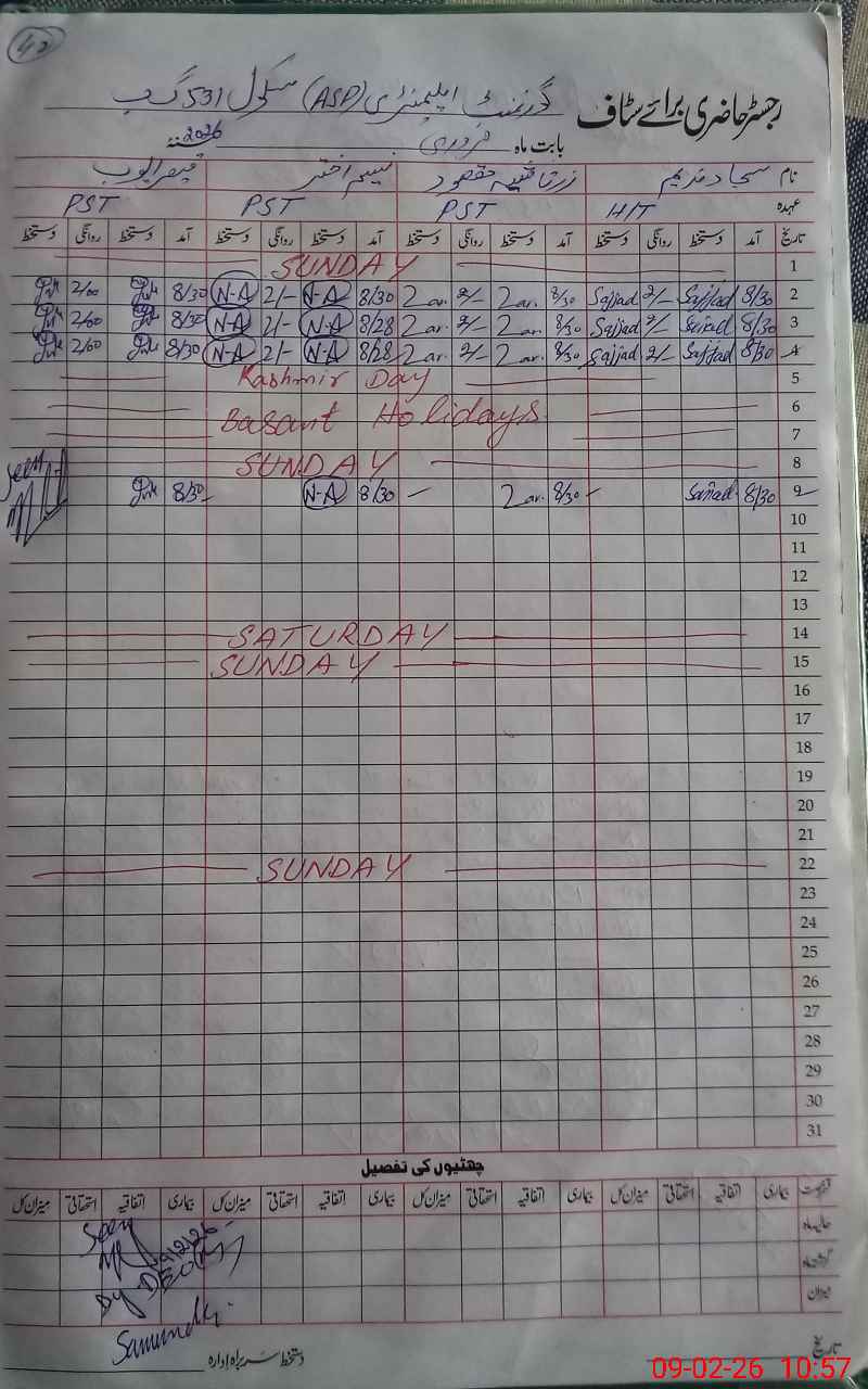 | Name: SA**** NA**** Designation: (School Headmaster's/Headmistress's) PST Phone/Cell Number: 03**** |