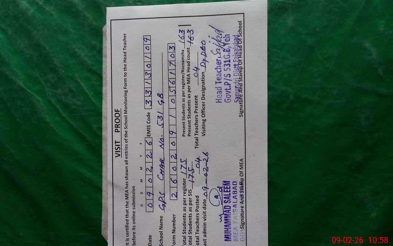 | EMIS Code: 33130109 | Name of School: GPS CHAK 531 GB SAMUNDRI | |||