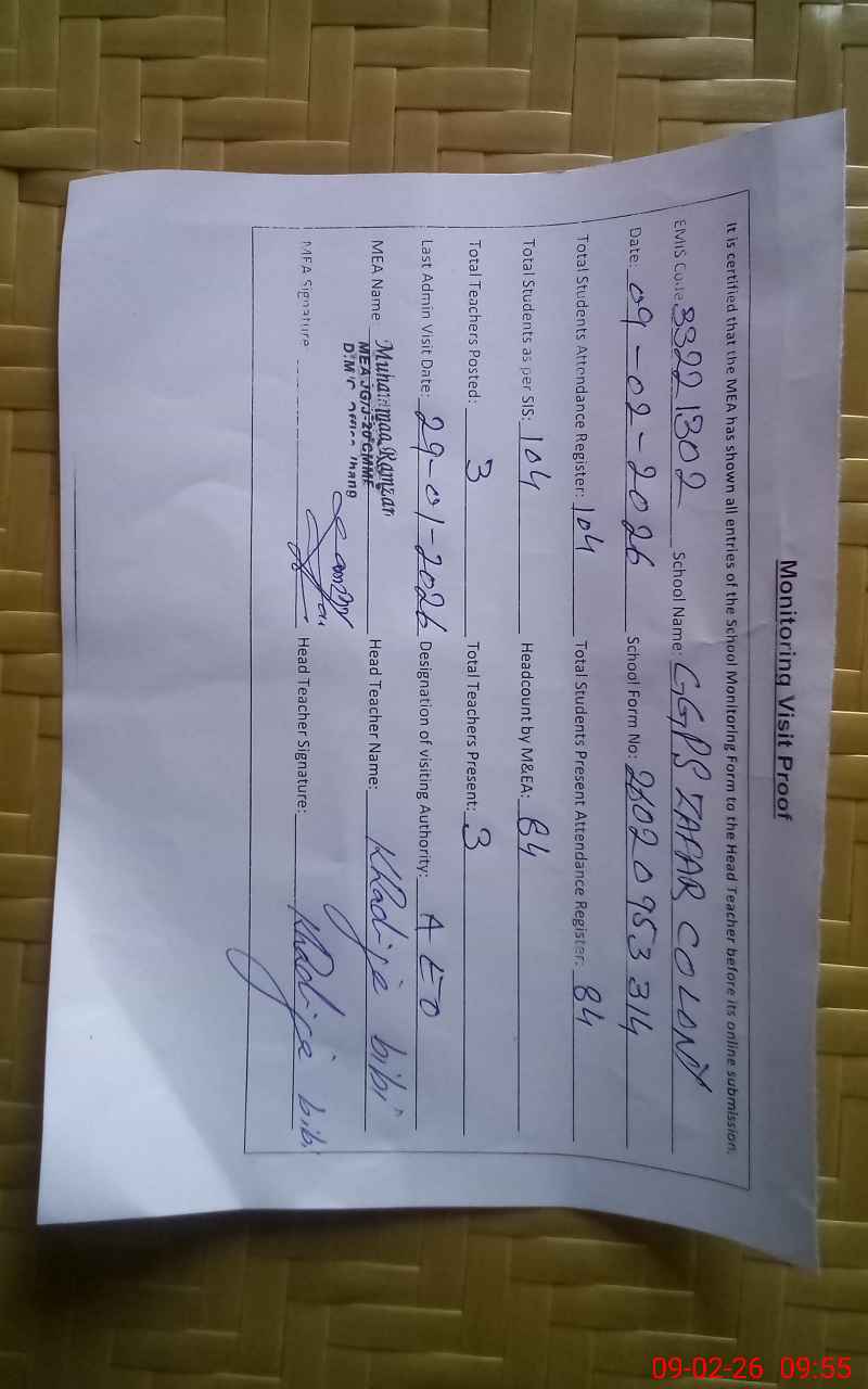 | EMIS Code: 33221302 | Name of School: GGPS ZAFAR COLONY | |||