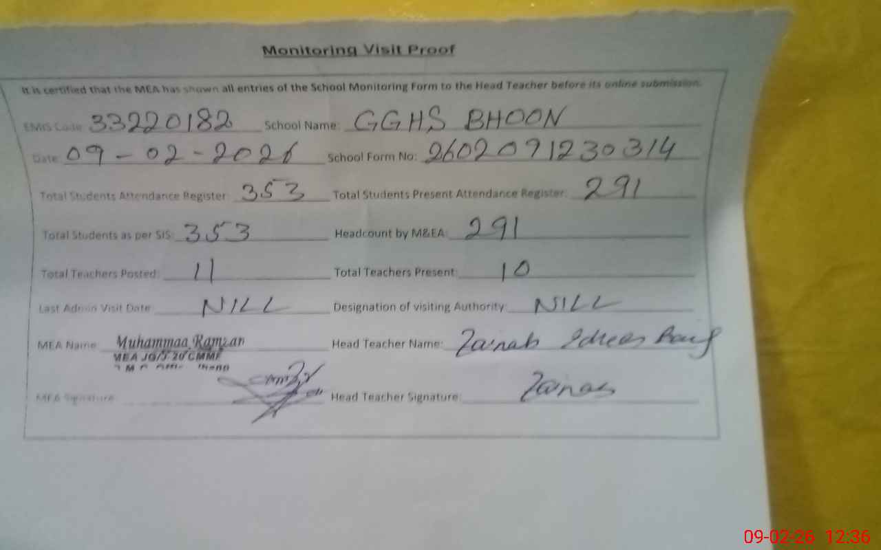 | EMIS Code: 33220182 | Name of School: GGHS BHOON | |||