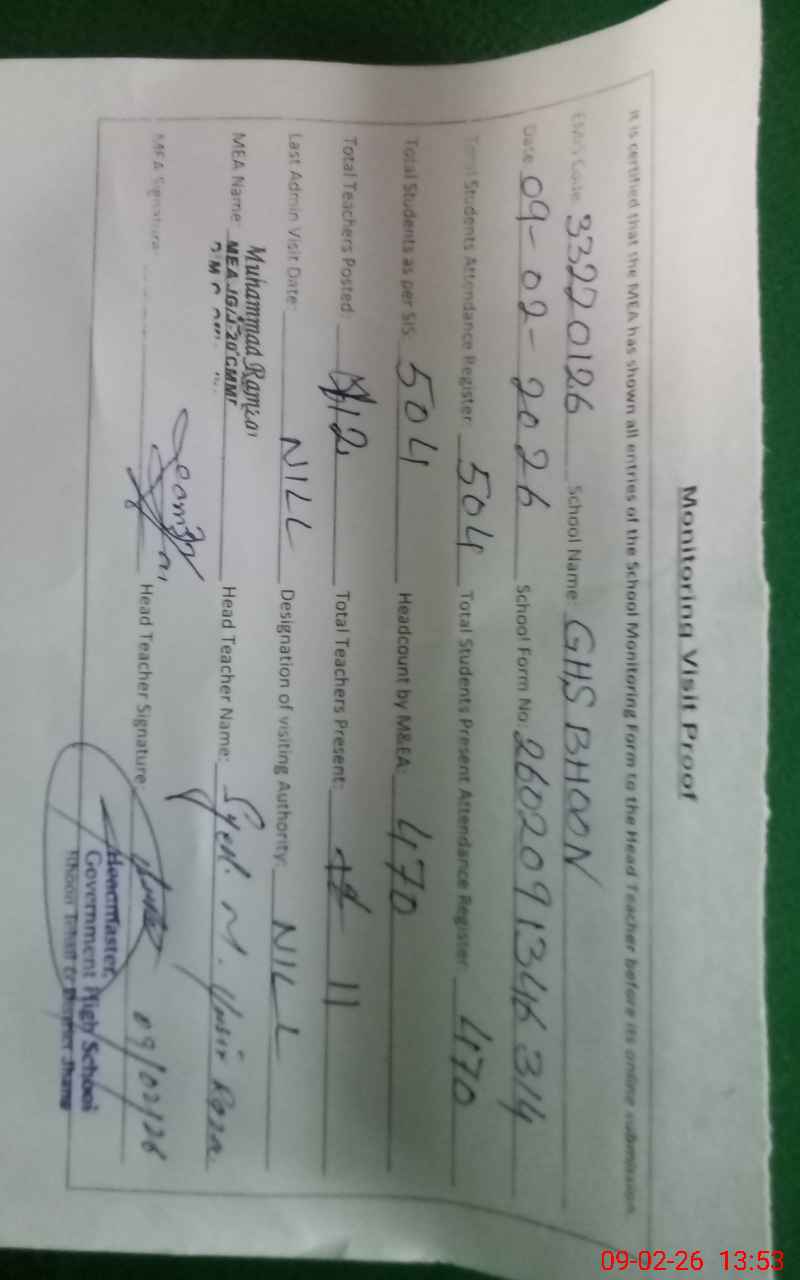 | EMIS Code: 33220126 | Name of School: GHS BHOON | |||