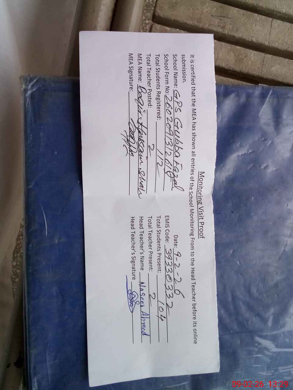 | EMIS Code: 39330332 | Name of School: GPS GUBBA FAZIL | |||