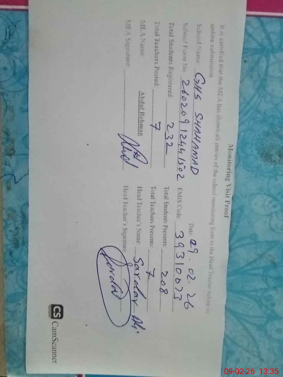 | EMIS Code: 39310073 | Name of School: GHS SHAHAMAD | |||
