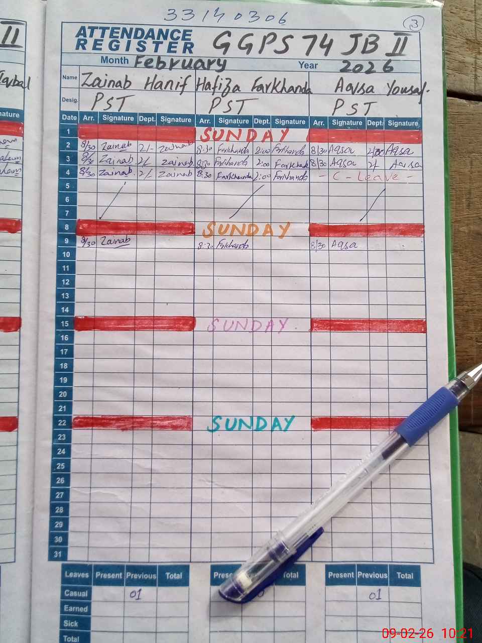 | EMIS Code: 33140306 | Name of School: GGPS CHAK NO 74 JB II | |||