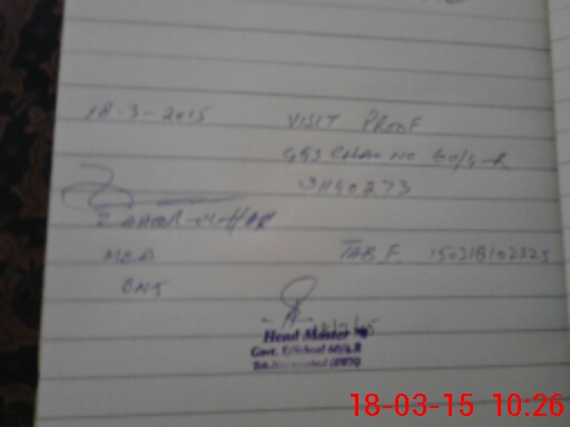 | Name: MU**** AL**** Designation: (School Headmaster's/Headmistress's) S.S.T.(Science) Phone/Cell Number: 03**** |
