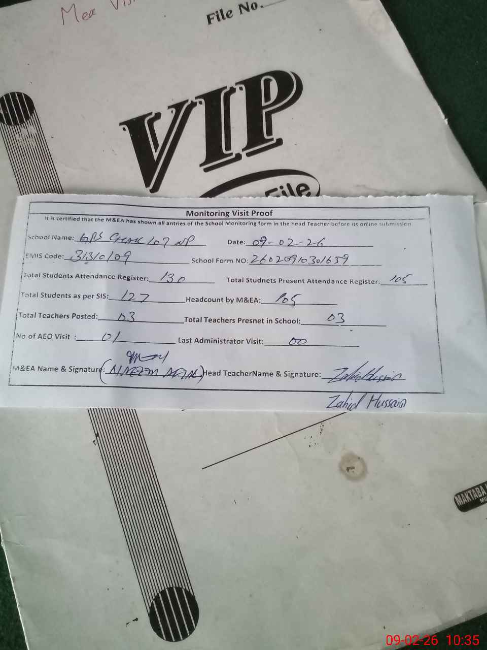 | EMIS Code: 31310109 | Name of School: GPS CHAK NO 107 NP (After Noon) | |||